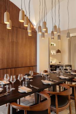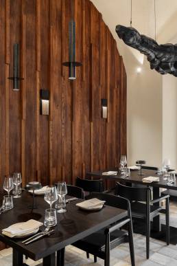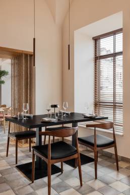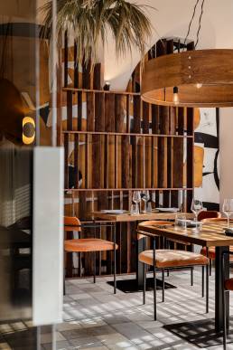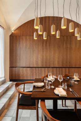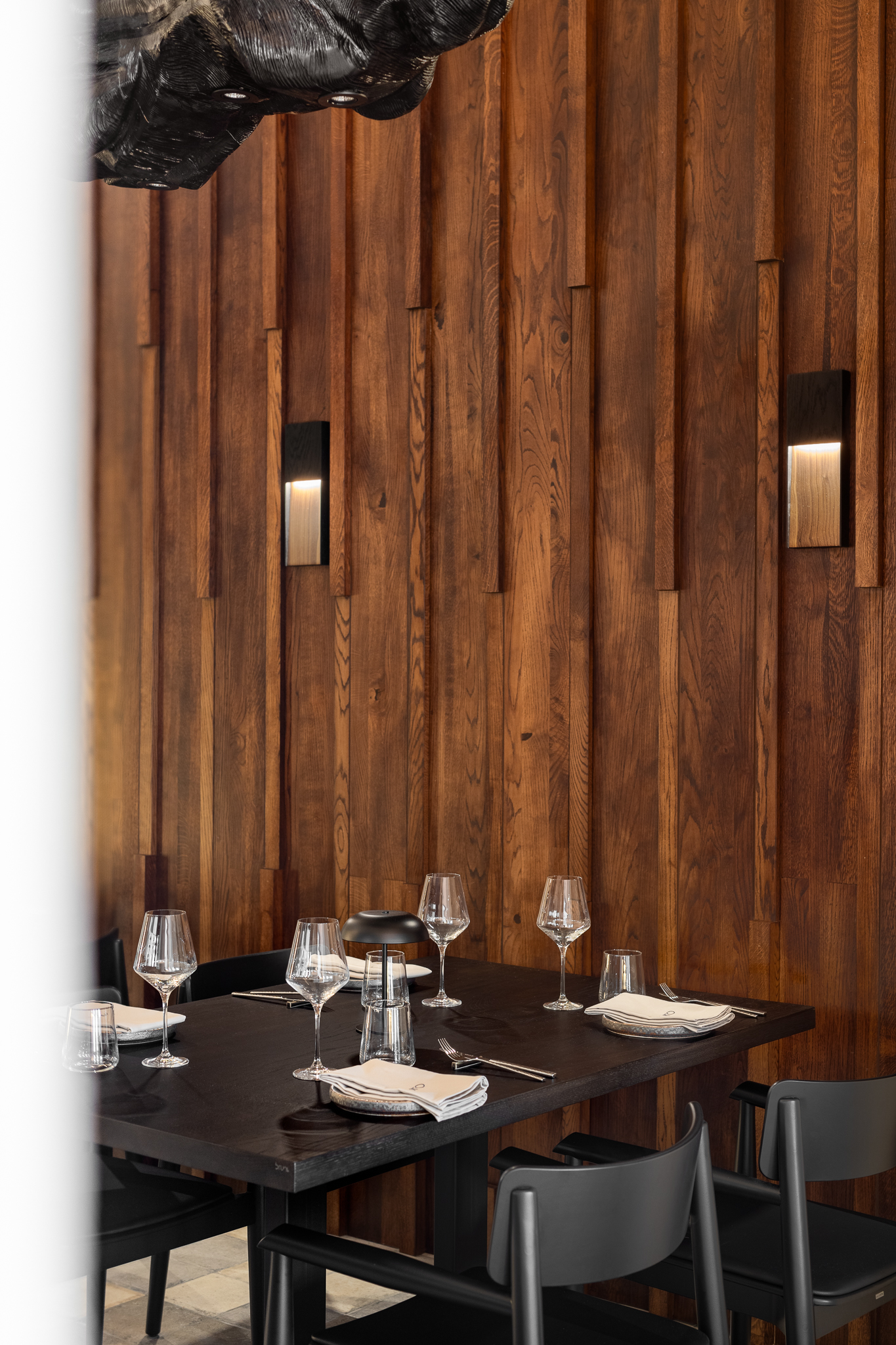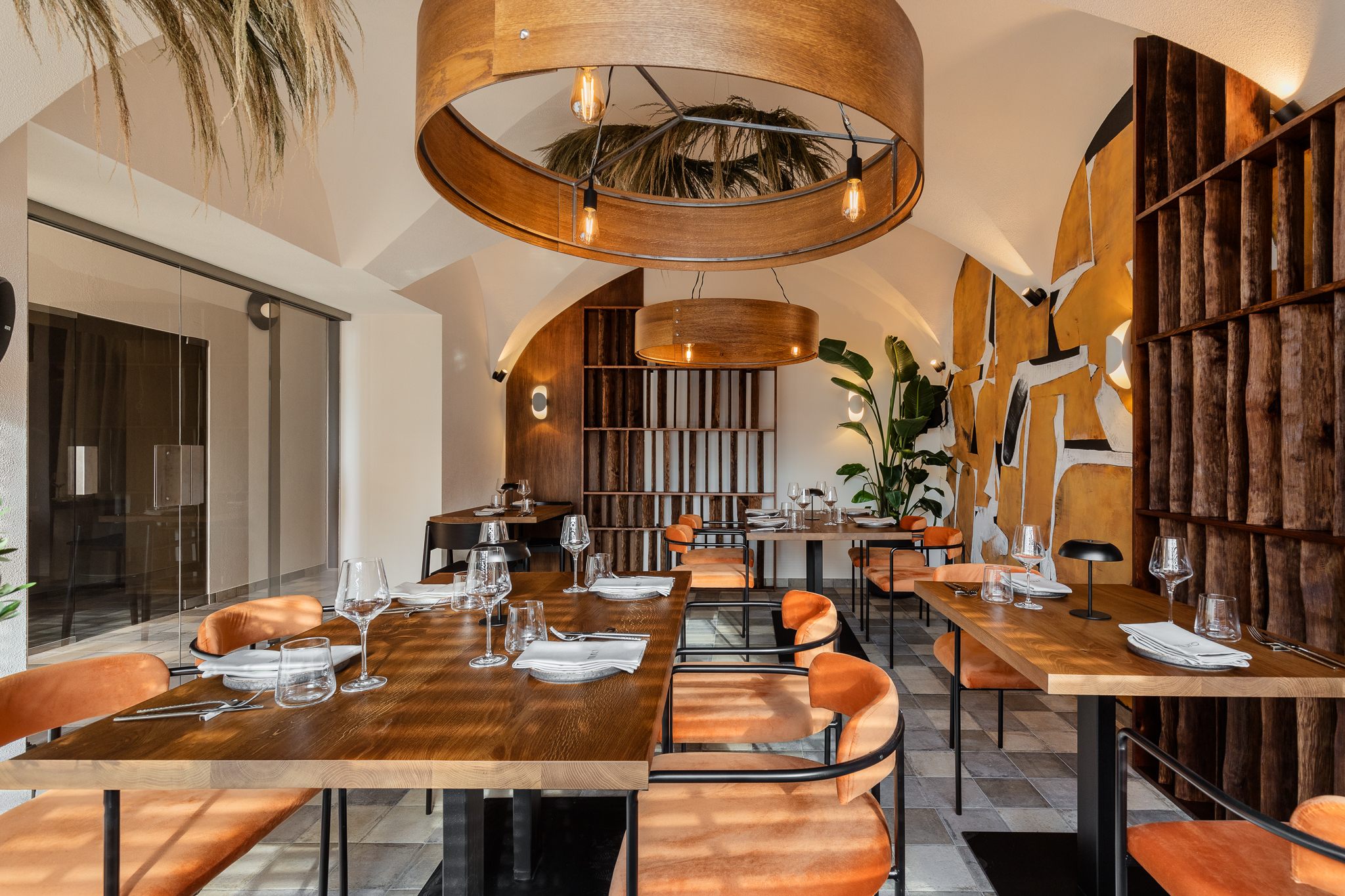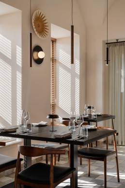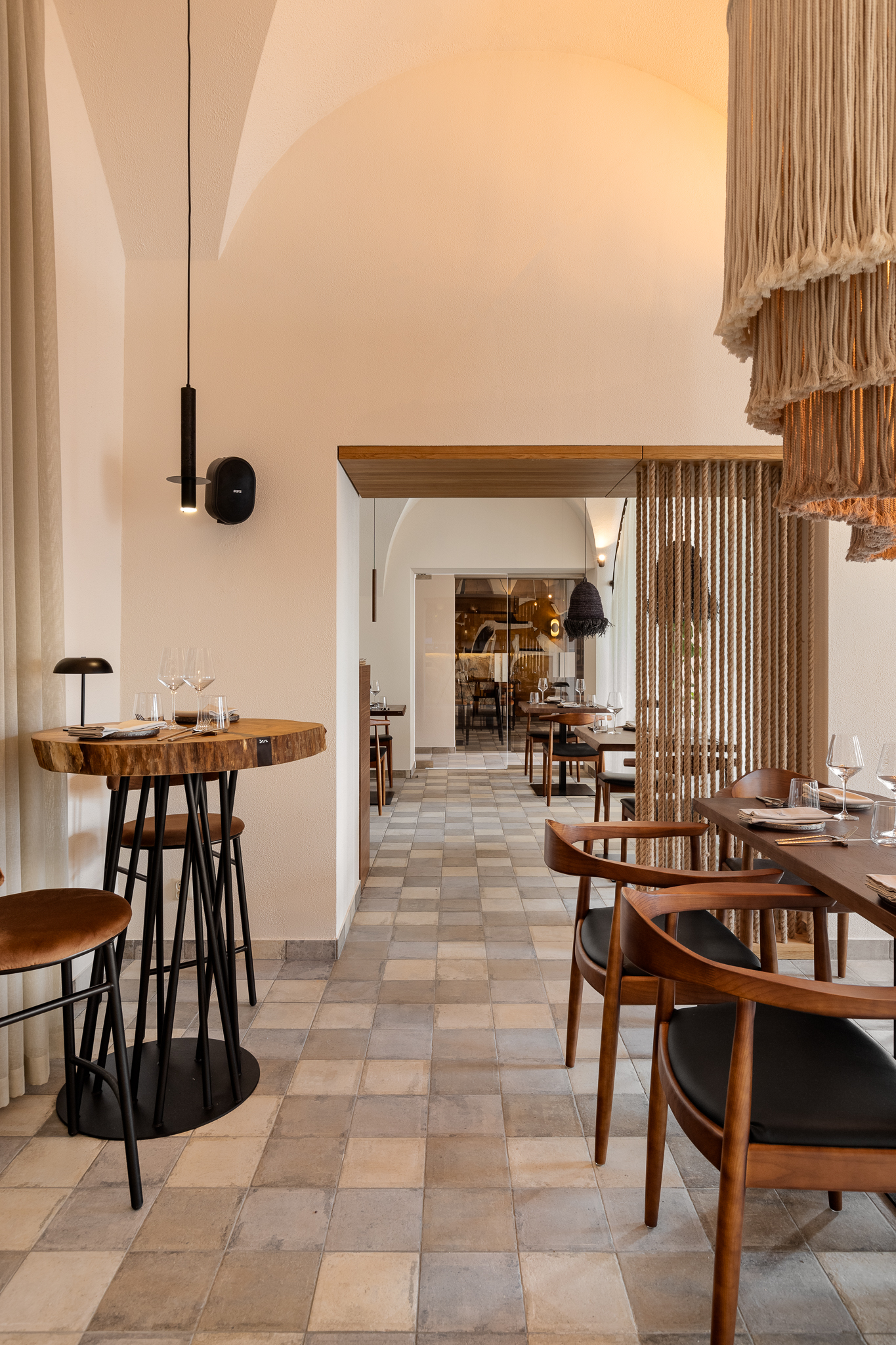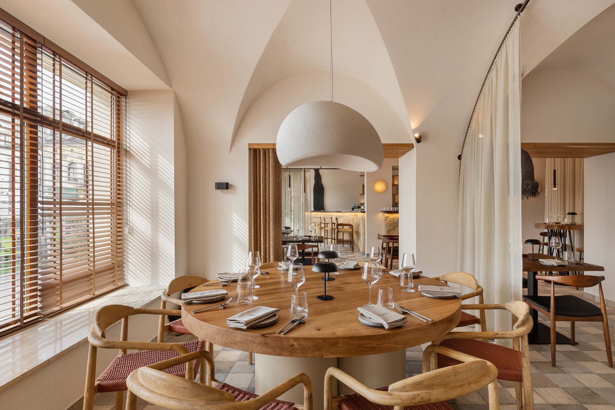 Dla Bello Studio był to pierwszy projekt w tak historycznej przestrzeni, ale ich podejście — łączenie autentyczności materiałów z niebanalną estetyką — sprawiło, że wnętrze Muro wpisało się w atmosferę tego miejsca.